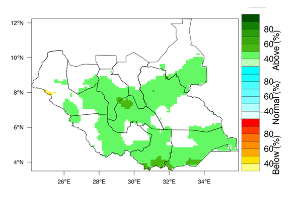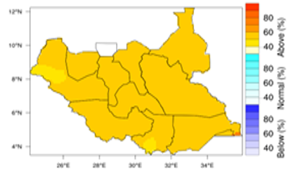 - A Probability of 40% for Average (normal) rainfall over Western parts of Western Equatoria; Northwest of Eastern Equatoria; Southern Jonglei and much of Pibor Administrative Area. And central Upper Nile State.